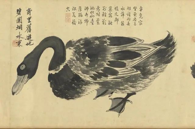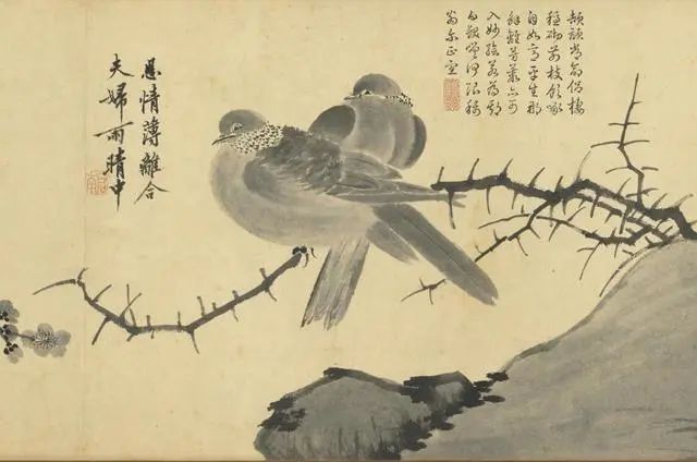在《写生卷》中,沈周以细腻的笔触和丰富的色彩,生动地描绘了自然界中的各种生灵。他的画作不仅注重形似,更注重神似,通过细腻的笔触和生动的形态,将花鸟的神韵和生命力展现得淋漓尽致。同时,他还巧妙地运用了留白和构图技巧,使得画面更加疏朗有致,给人以无限遐想。